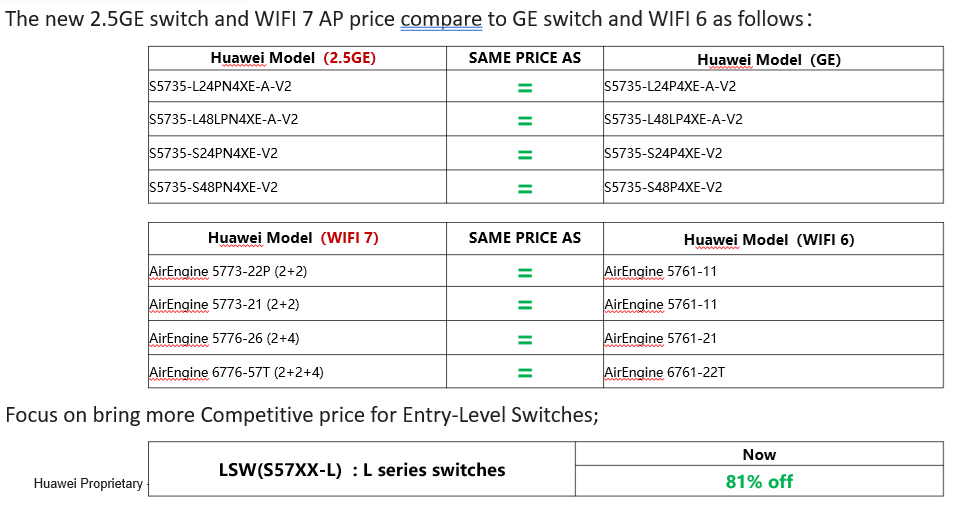 Cena Wi-Fi 7 a 2.5GE switchov zostáva rovnaká ako u Wi-Fi 6 a GE switchov